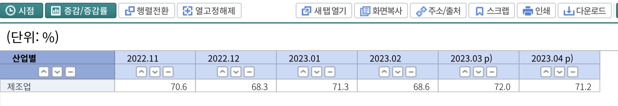 제조업 가동률의 적정 수준은?