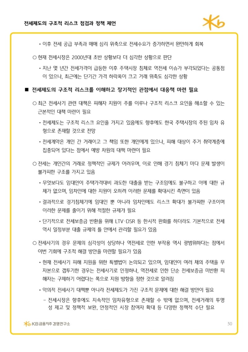 현재 전세시장의 문제점 등에 대한 자료입니다
