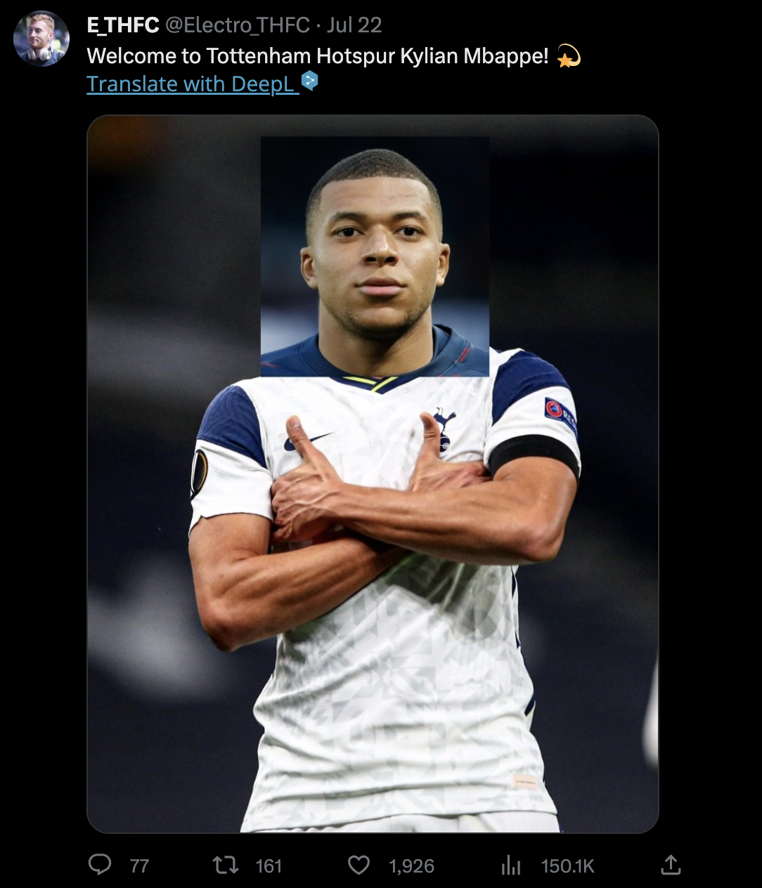 갑자기, 음바페가 케인을 대신한다는 루머가 돌고 있습니다.