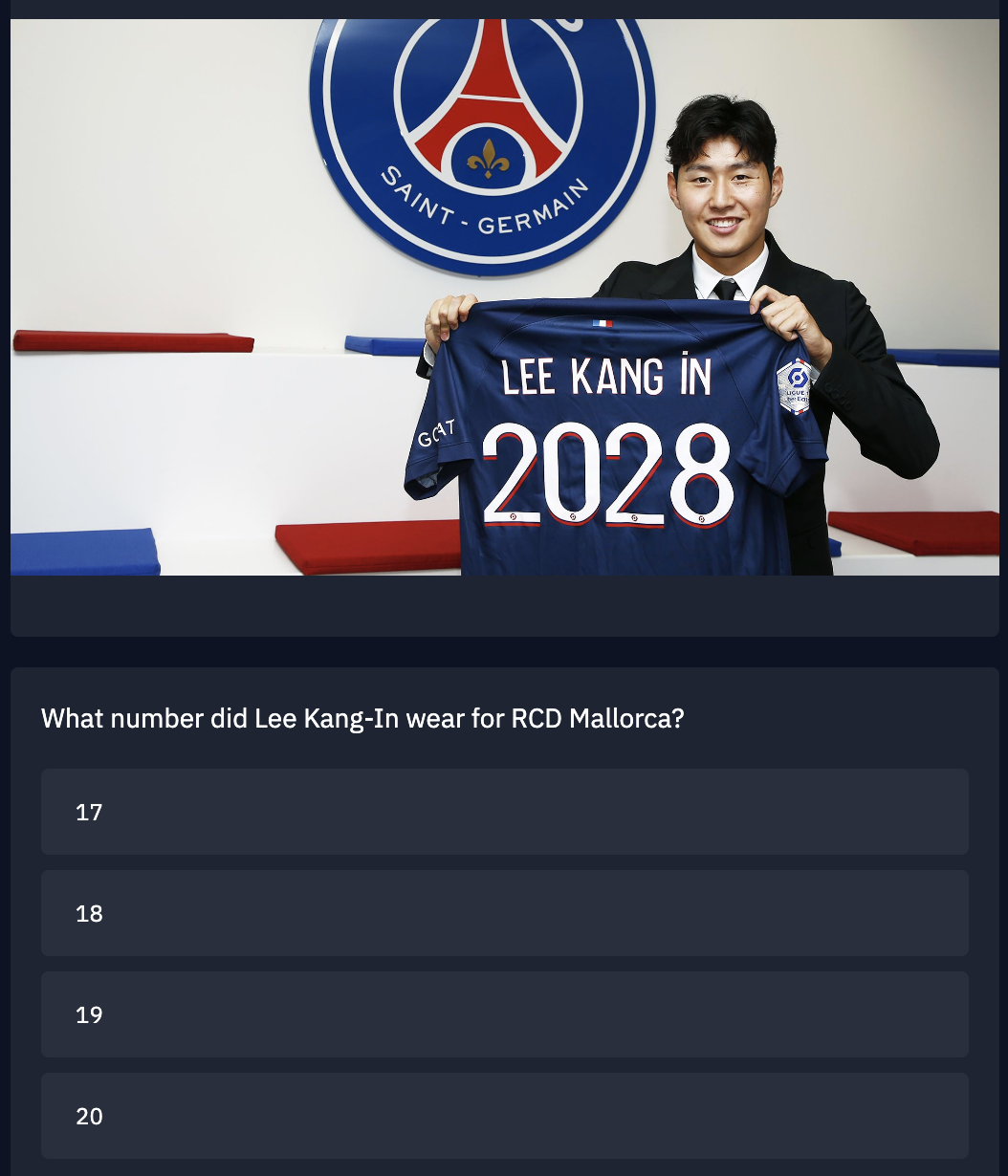 PSG 공식홈페이지에서 팬들이 이강인이에 대해 얼마나 잘 아는지에 대해 퀴즈를 진행하고 있습니다.
