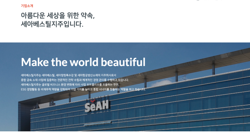 세아베스틸은 자동차, 기계, 건설장비에 들어가는 특수강을 만들고 원자력 제품도 보유하고 있습니다. 세아창원특수강은 스테인리스 봉강과 선재, 이음새 없는 강관을 함께 생산합니다. 세아항공방산소재는 항공과 방산에 쓰이는 고강도 알루미늄 소재를 맡고 있습니다.