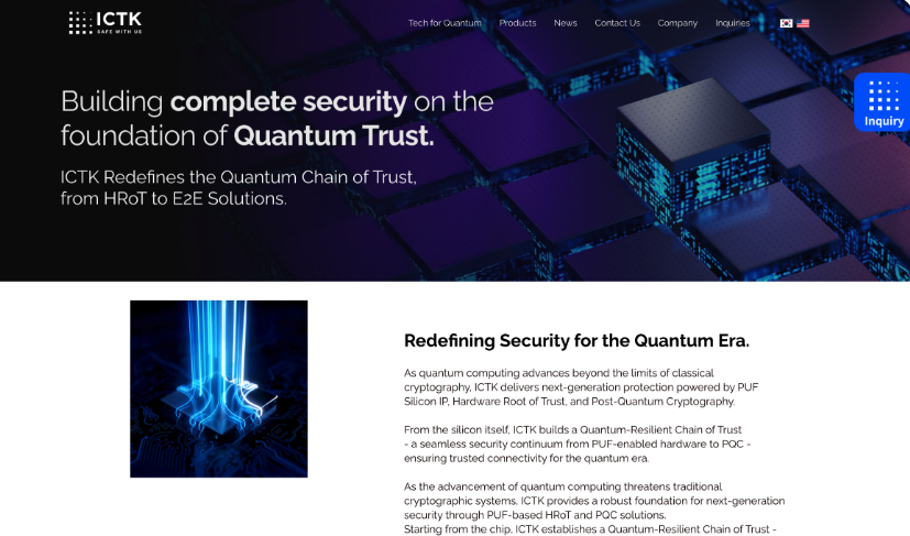 공식 홈페이지를 보면 아이씨티케이는 스스로를 양자보안 선도기업으로 설명합니다.