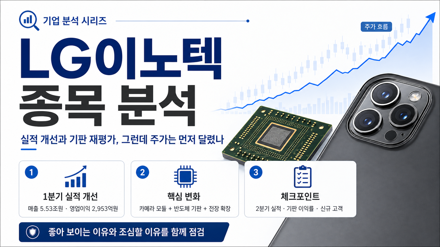 예전의 LG이노텍은 ‘아이폰 카메라 모듈’ 종목으로 읽혔지만,지금은 여기에 반도체 기판, 전장 부품, 피지컬 AI까지 더해 보고 있다.
