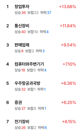 - 창업투자 (+13.88%): 리스크 완화에 따른 모험 자본 기대감