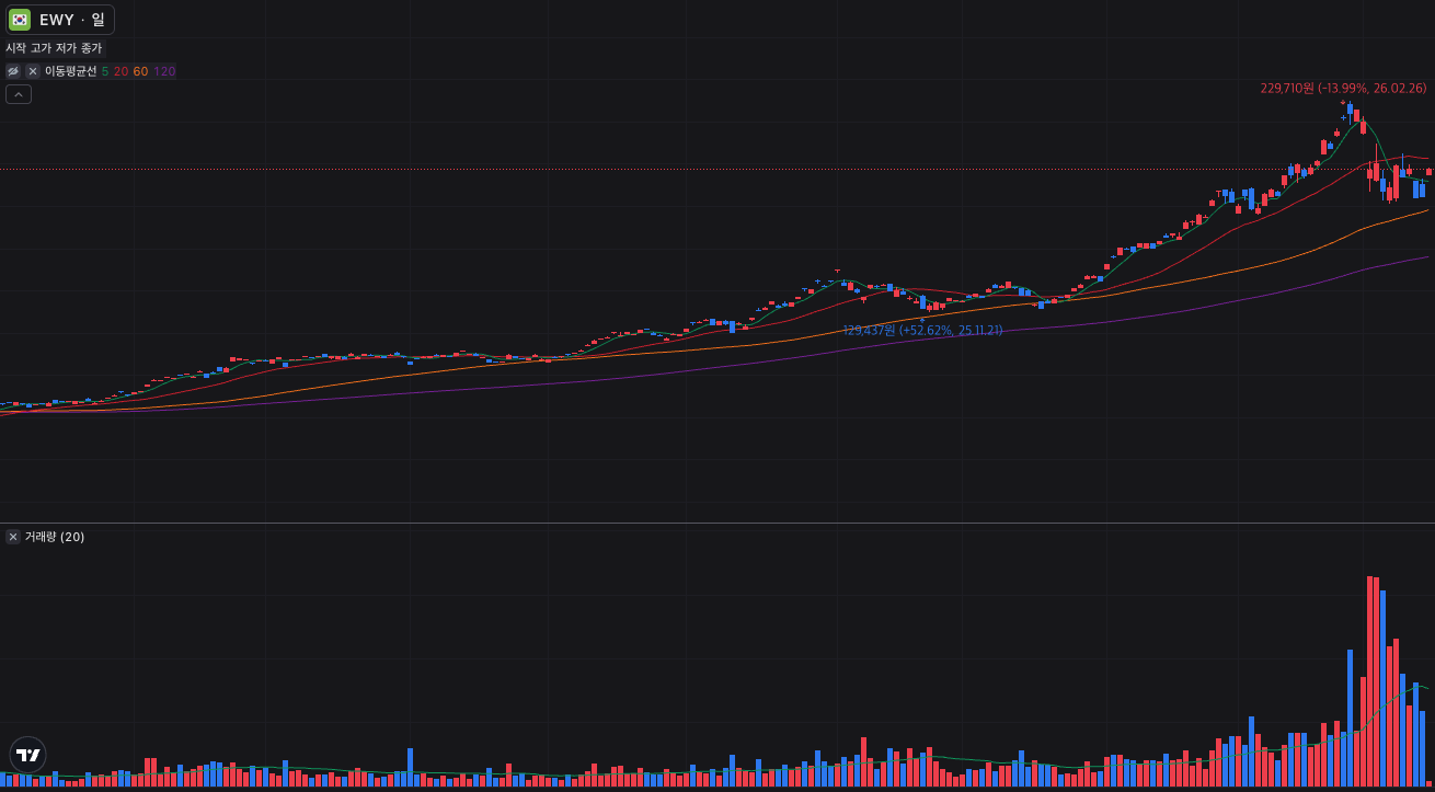 - 현재의 흐름: 3월 16일 미국 프리마켓에서 EWY는 무려 5.31% 상승한 130.74달러를 기록하고 있습니다.