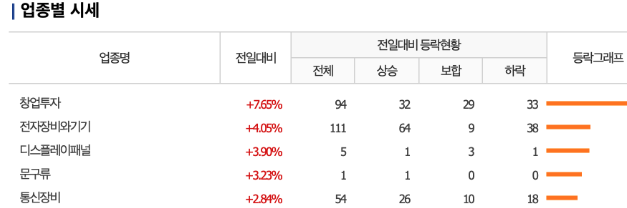 - 네이버 금융 업종별 시세