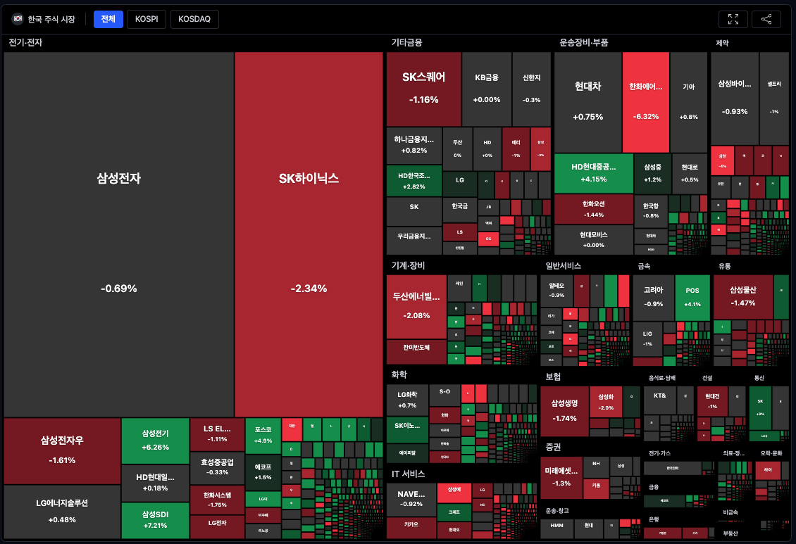 - 반도체(삼성전자·하이닉스): 거래대금은 여전히 9조 원대로 압도적이었지만, 주가는 1~2%씩 밀렸습니다. "잠시 쉬어가는 대장주"의 모습입니다.