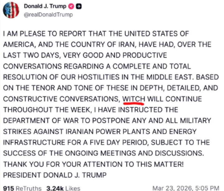 | 확인됨 | 트럼프가 3월 23일 트루스소셜에서 5일 유예를 언급 | 시장이 바로 반응한 출발점 |