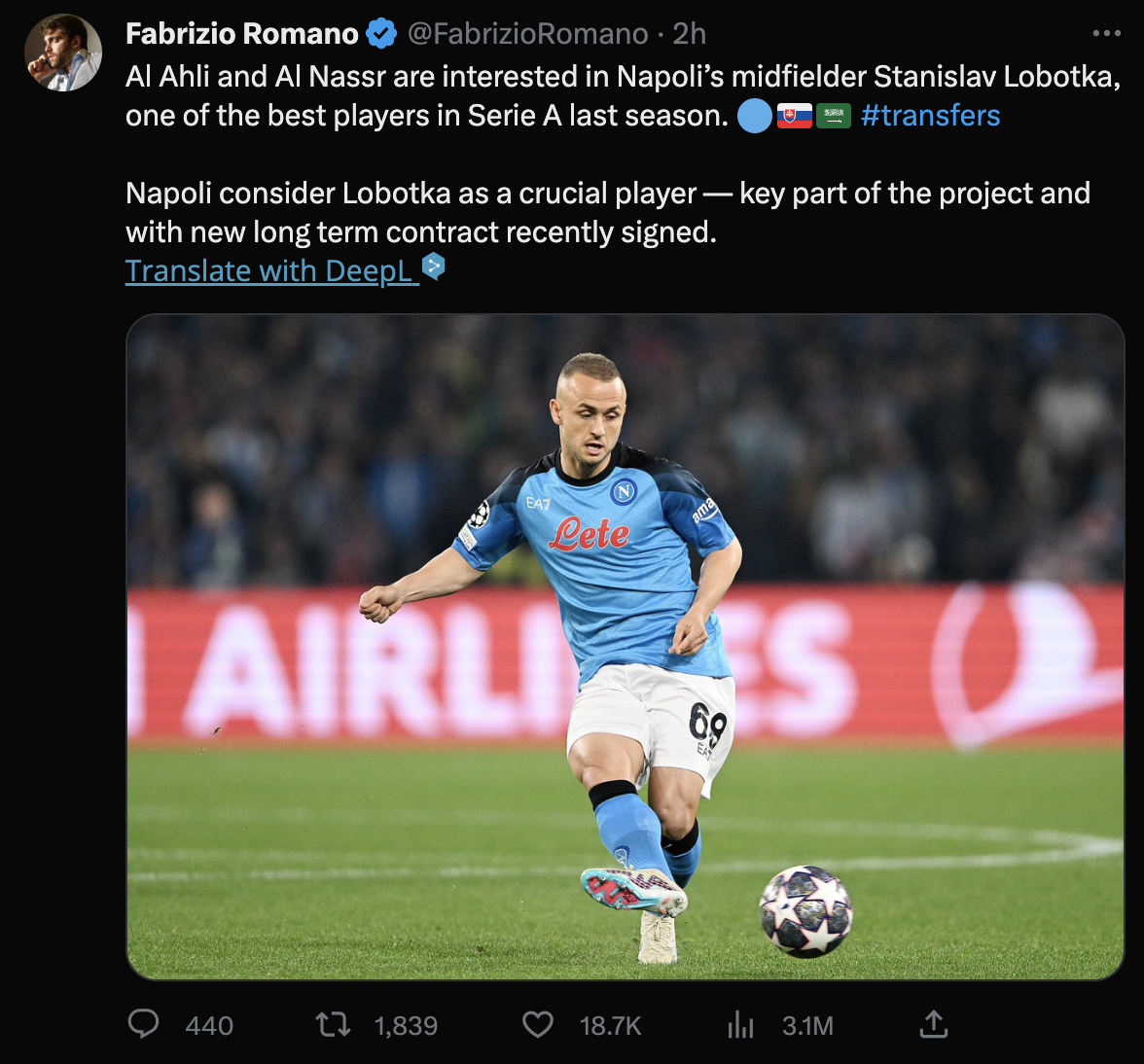 나폴리의 미드필더 스타니슬라프 로보트카에게