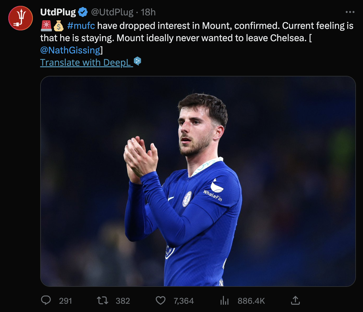 마운트가 첼시에 계속 남고 싶어 하기 때문입니다