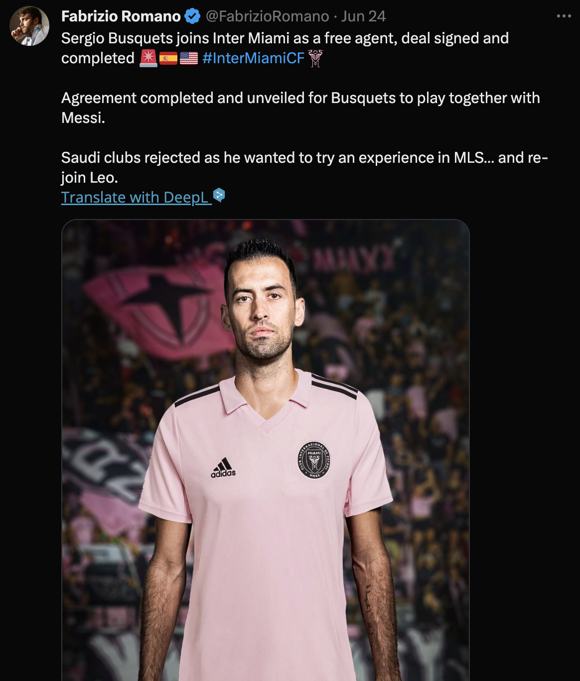 사우디의 클럽들은 부스케츠가 MLS 이후 함께 하길 기대하고 있습니다.