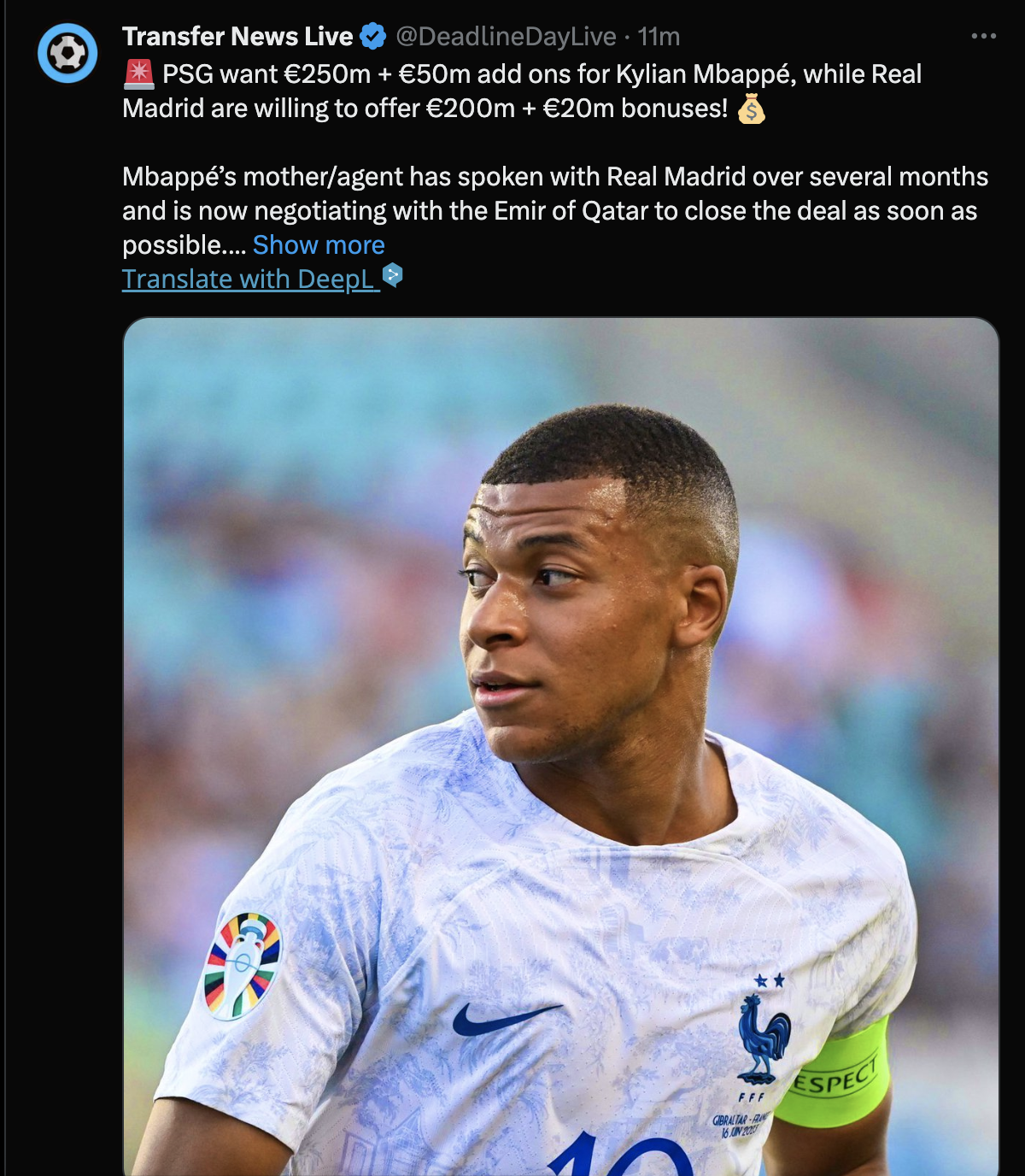 레알 마드리드는 2억 유로에 2천만 유로 옵션으로 제시할 의향이 있습니다.