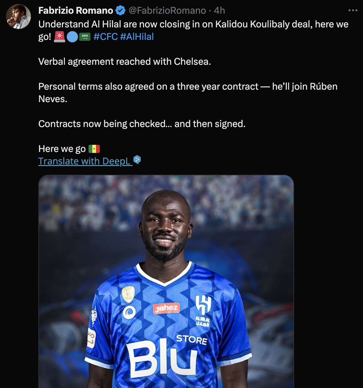 알 힐랄이 칼리두 쿨리발리 영입을 마무리 짓고 있습니다! #CFC #알힐랄