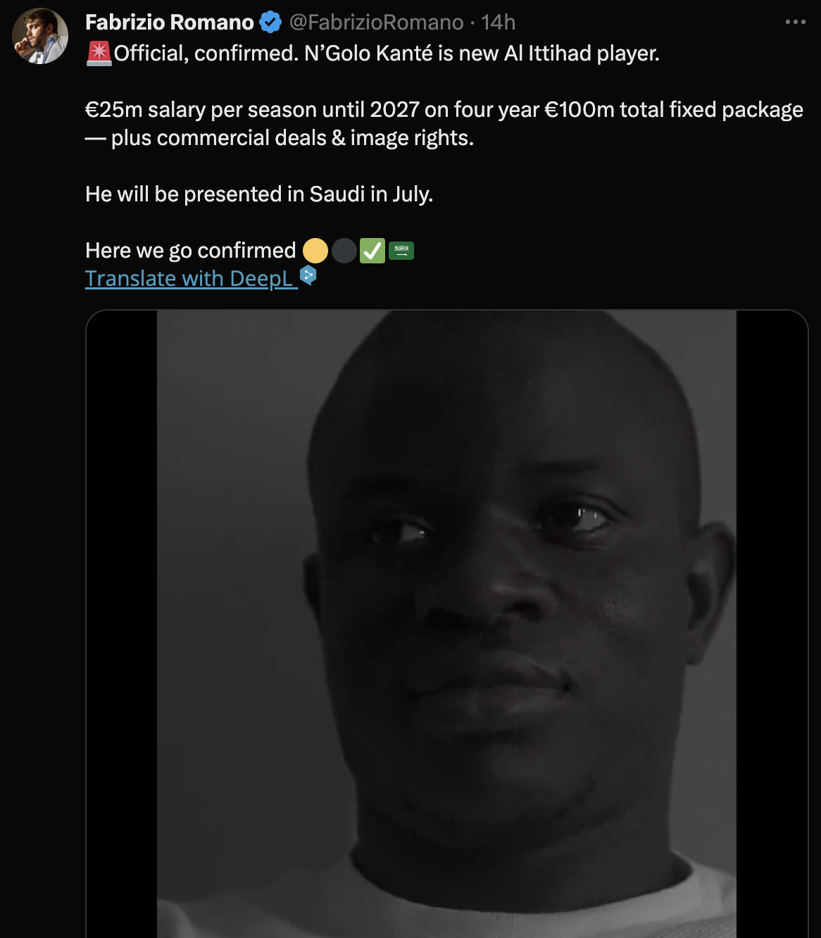 공식 확정. 은골로 칸테가 알 이티하드의 새 선수가 되었습니다.