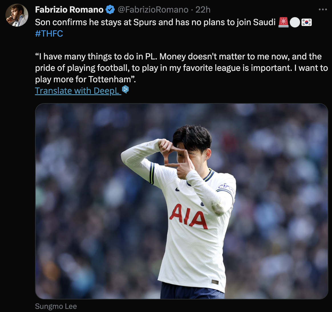 손흥민, 토트넘 잔류 및 사우디 #THFC 입단 계획 없음 확인