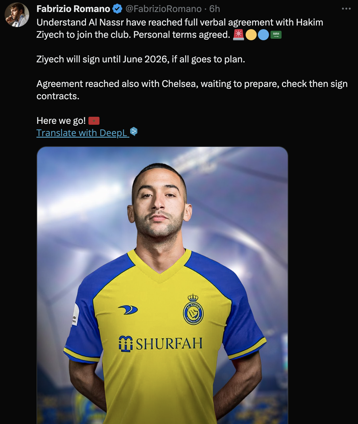 알 나스르가 하킴 지예흐와 클럽 가입에 구두로 완전히 합의했습니다. 개인 조건에 동의했습니다.
