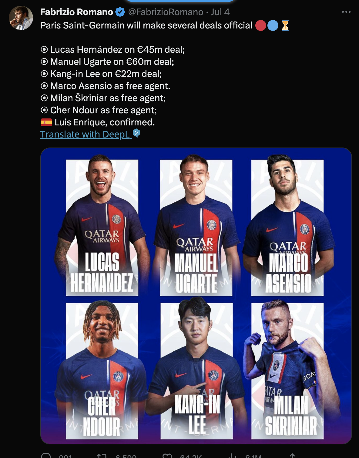 23/24 시즌 PSG 영입명단