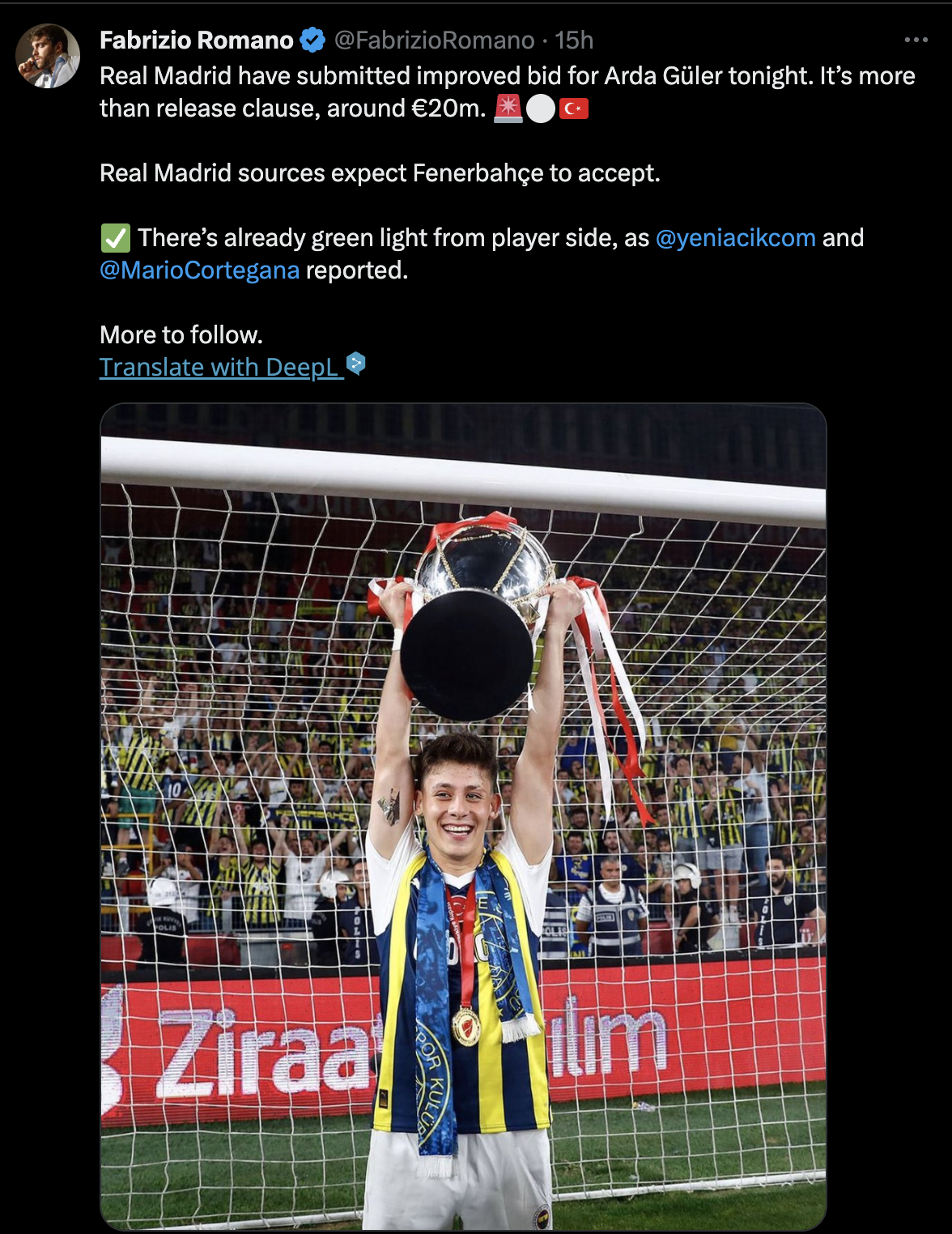 아르다 귈러는 김민재가 뛰었던 페네르바체 소속으로