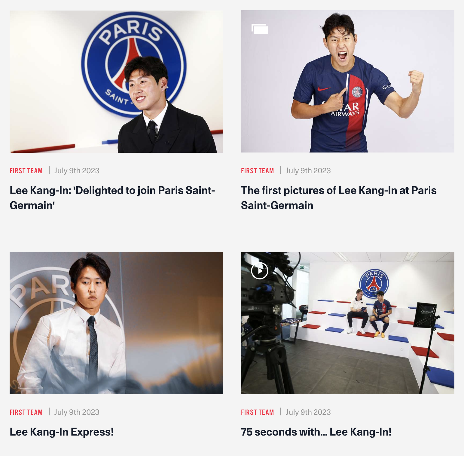 이강인 이적소식은 PSG의 공식 홈페이지(https://en.psg.fr/teams/first-team/news)에서