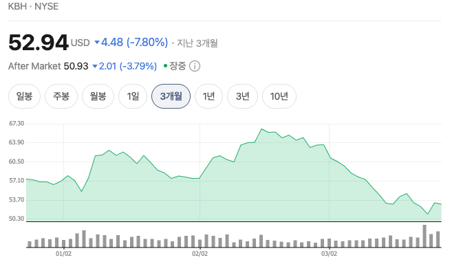 정규장이 끝난 뒤 들려온 주택 건설업체 **KB홈(KBH)**의 소식은 한국 투자자들에게도 중요한 힌트를 줍니다.