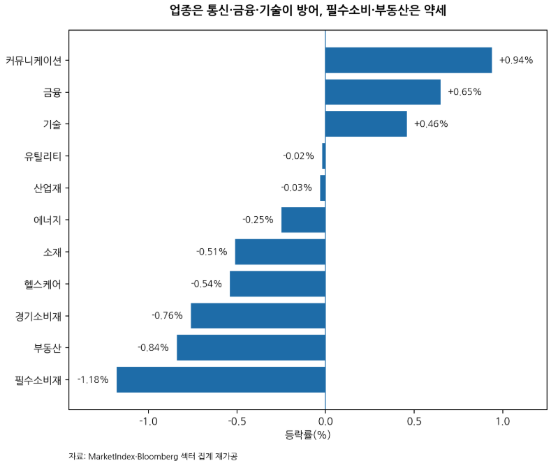 업종은 통신·기술이 받치고, 소비가 흔들렸습니다
